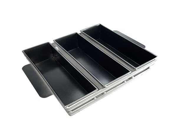The 3 straps bread loaf pan with handles is capable of making 3 loaves, each pan measures 230x95x75mm; the loaf pans overall measures 336 x 245.3×78.5mm.