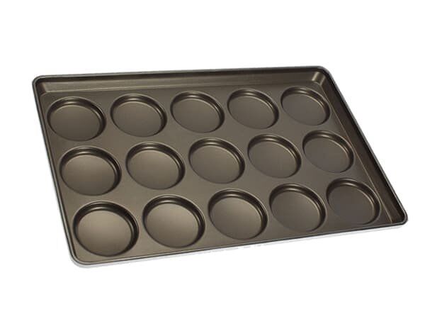 ♦ 15-on, 3 rows of 5, 4″ hamburger bun pan