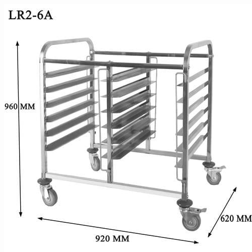 6-level, double-arranged stainless steel sheet pan cart for easy storage and transport of 12 pans